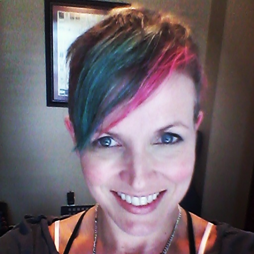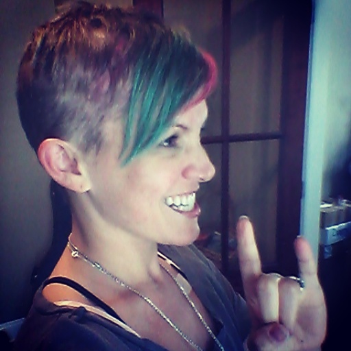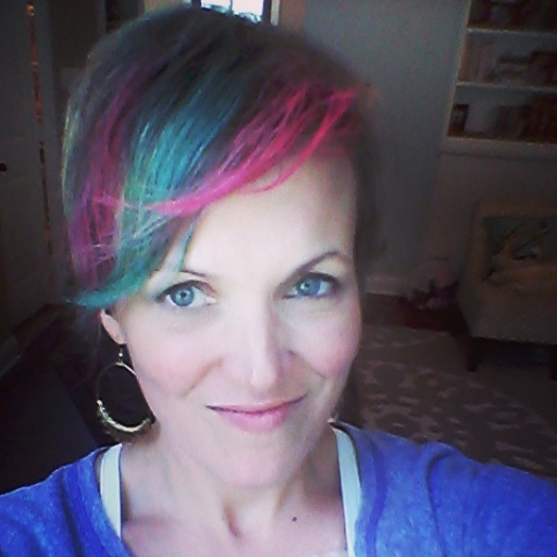 In the 6th grade, me and my buddy, Eva,  BEGGED our moms for blue hair for me, and purple for her.  They said “No” (insert eye roll and preteen deep exhale/gasp).  I never stopped asking. I was totally jealous of another bud, Duckie, in college, who died his whole head blue!  So… the “it’s just a phase” mentality that my mamma had, wasn’t so, I guess.  Welp.  Now nobody can stop me, and here I am.  Rockin the blue, with a little hot pink (pink for breast cancer, pink for Jem and the Holograms, and just cuz it looks awesome next to the blue!)  I know we all think of Jem from the ’80s, but… the bad gurlz on the show were “The Misfits” and they rocked the big blue hair and animal print leggings.  I secretly wanted to be a Misfit…just with Jem‘s earrings! 😉  Clearly, the rebel had been unleashed, which inspired this…