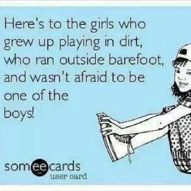 That’s the same reason why you complained that my shoes stunk when I took them off in the car as a kid since I never wore socks (Heck, I rarely wore shoes, so why wear socks?). ‘Twas the same reason that you said my finger nails were always dirty, and my “Jamz” had holes in them. Hangin’ with the boys meant climbin’ trees with to scope out sweet spots for mud-bomb attacks on passersby and building your own forts in the woods, only to have your head raided for ticks with tweezers and match sticks at night. Ugh. (But so worth it) Any readers still with me, or did I just lose a few? Sorry, it just got real for a moment there!