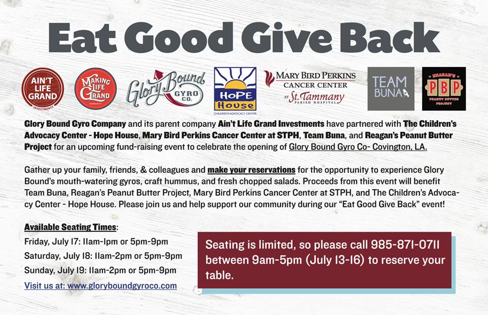 Chris and his team are known in our area for MUGSHOTS BURGERS AND GRILL and are now opening a new branch of their chain, GLORY BOUND GYRO CO. (I’m utterly defenseless against their hummus. It is my kryptonite! Yes, kiddos, we will be eating a lot of hummus, brace yourselves.)